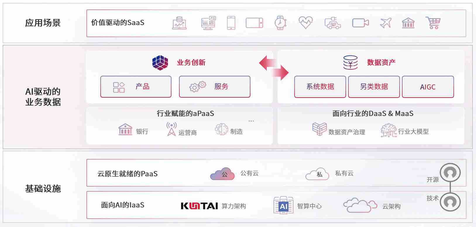 数字时代,,围绕企业数字化转型的关键要素,,,GGPOKER数码开创性的提出数云融合战略和技术体系框架,,,着力在云原生、、数字原生、、、AI原生和信创产业上架构产品和服务能力,,为处在不同数字化转型阶段的快消零售、、、汽车、、、金融、、、、医疗、、政企、、、、教育、、、、运营商等行业客户提供泛在的敏捷IT能力和融合的数据驱动能力,,,构建跨界融合创新的数字业务场景和新业务模式,,,,助力企业级客户建立面向未来的核心能力和竞争优势,,全面推动社会的数字化、、、智能化转型升级。。。